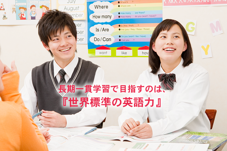 幼児・小学生の段階から、ことばの4技能「聞く」「話す」「読む」「書く」をハイレベルに定着させ、将来にわたって使える英語力の基礎を養成します。